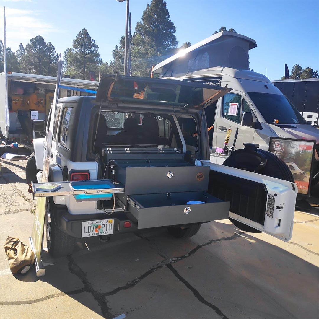Unser Geschäftsführer Pascal wurde zur größten Offroad- und Vanlife-Messe der Welt, zur Overland Expo, in die Vereinigten Staaten eingeladen. Natürlich entschieden wir uns dazu, mit einem amerikanischem Fahrzeug zur Messe zu fahren. Es wurde ein Jeep Wrangler, den wir mit einer unserer Ello Campingboxen ausgestattet haben.