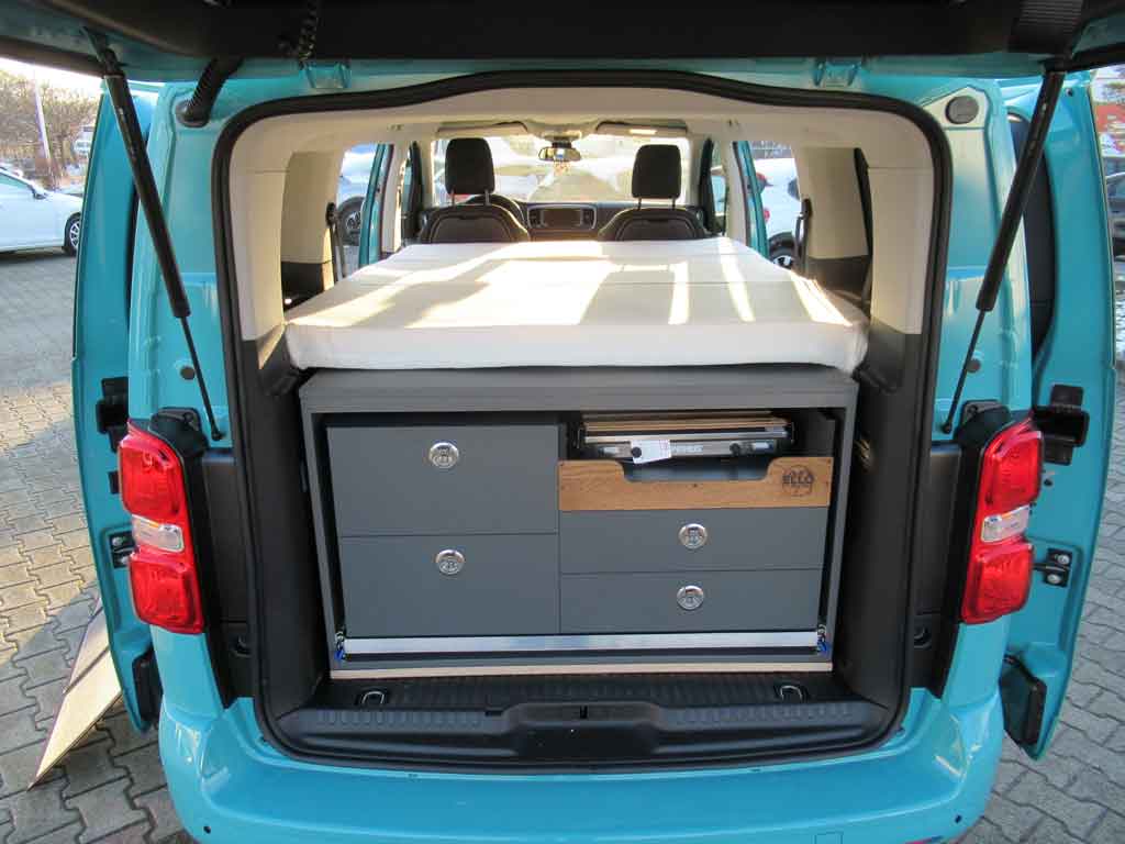 Ello Campingbox für Hochdachkombi lang, mit Kühlboxintegration, Koch- und Schlafmöglichkeit und fließendem Wasser